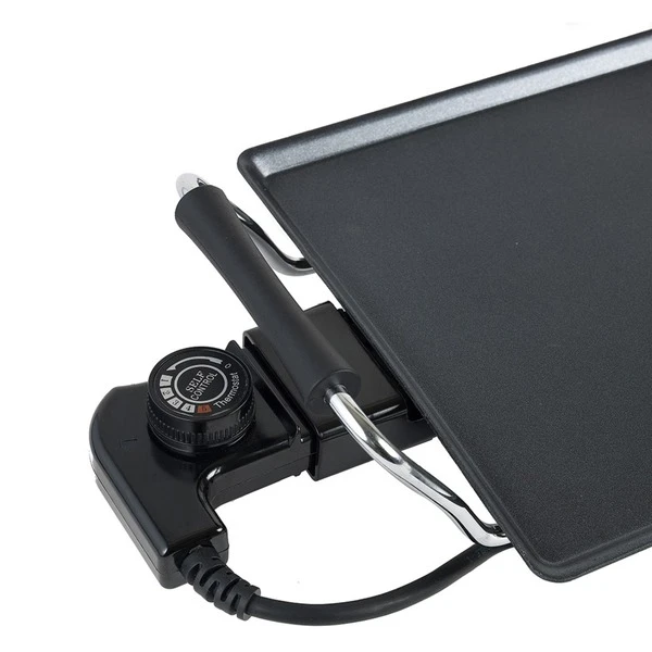 Die Elektro Plancha Grillplatte ABP603 von Bestron ist eine große hochwertige Backplatte mit Antihaftbeschichtung (Grillfläche 70 x 23cm), sie eignet sich besonders für z.B. Fleisch, Fisch, Gemüse oder Kartoffeln. Zum Grillen ist kein Öl oder Fett nötig. Eine Auffang-Rinne und -Schale nehmen überschüssiges Fett oder Grillrückstände auf. Die Plancha kann im Innenbereich und wettergeschützt im Freien verwendet werden. Der abnehmbare einstellbare Temperaturschalter ist mit einer Kontrollleuchte ausgestattet. Die leicht zu reinigende Plancha ist außerdem mit wärmeisolierten Griffen und Antirutschfüßen versehen.Art.-Nr.: 1535980