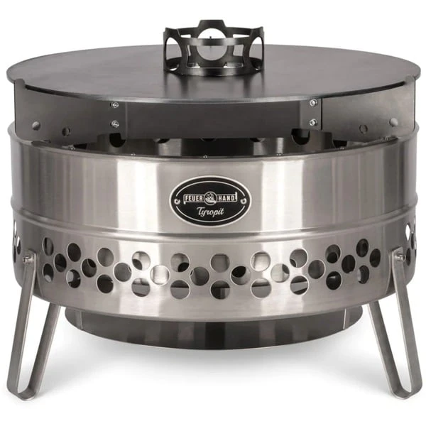 Die Feuerhand Grillplatte pypla2 verwandelt die Feuertonne Pyron oder die Feuerschale Tyropit in eine Kochstation und ermöglicht mehr als nur Grillen. Auf der massiven 6mm starken Stahlplatte kann man mit der Hitze nach Herzenslust aromatisch braten. Durch die gleichmäßige Hitzeverteilung lassen sich verschiedenste Köstlichkeiten auf der Platte zubereiten. Neben Fleisch eignet sie sich besonders gut für Fisch und Meeresfrüchte. Aber auch Burger, Gemüse, Desserts oder Frühstück mit Spiegelei, Pancakes und Speck gelingen auf der Grillplatte im Handumdrehen. Hohe Temperaturen und die indirekte Hitze ermöglichen ein saftiges Grillergebnis mit ansprechender Kruste. Der integrierte, abnehmbare Kochaufsatz in der Mitte sichert Eier, Würstchen und Co. gegen ein Abrutschen ins Feuer und dient zum Zubereiten von Eintöpfen, Beilagen oder Heißgetränken. So kann man die Hitze nutzen, um mit Freunden ganze Gänge auf der Grillplatte zuzubereiten. Die großzügigen Aussparungen versorgen die Feuertonne oder Feuerschale auch mit Kochgeschirr auf dem Aufsatz mit genügend frischem Sauerstoff, um das Feuer ordentlich brennen zu lassen. Außerdem ermöglicht die Aussparung in der Mitte des Aufsatzes ein sicheres Nachfüllen von Holz während der Benutzung. Mit dem dreiarmigen Trägergestell liegt die Grillplatte sicher auf der Feuertonne Pyron oder der Feuerschale Tyropit auf.Art.-Nr.: 100024969