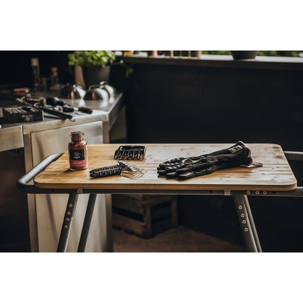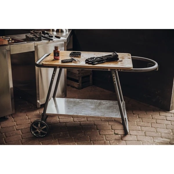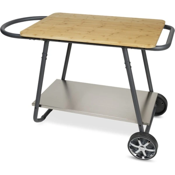 Der Moesta Sheriff Pelletgrill Beistelltisch passt perfekt zum Sheriff Grill. Das Rahmenrohrgestell inklusive Rollen ist mit einem XL Bambusbrett ausgestattet. Diese Arbeitsplatte hat die Abmessungen 60 x 90 cm. Der Beistelltisch eignet sich hervorragend für das Zubereiten von Speisen.Art.-Nr.: 1700999