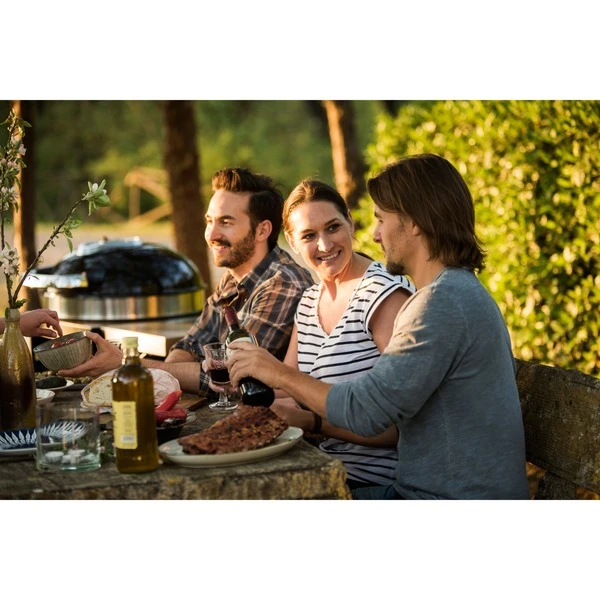 Die neue Version des PRO22K-CART ist mit einem optimierten Lüftungssystem ausgestattet. Mit dem PRO22K-CART-2 hat Napoleon einen Holzkohlegrill entwickelt, der jeden Grillfan begeistert. Das klassische Design und das geradlinige Wagen-Design wird durch den schwarzen Look des Kugelgrills und durch wenige Akzente aus Edelstahl unterstrichen. Wie bei den Gasgrills setzt Napoleon auch beim Holzkohlegrill PRO22K darauf, dass sich Qualität, Hochwertigkeit und Ausstattung auszahlen. Die Garkammer, bestehend aus Kessel und Deckel, ist mit extra dickem Platinum-Porzellan beschichtet, was den Grill sehr widerstandsfähig macht. Zur Ausstattung des PRO22K gehören das ACCU-PROBE™-Thermometer im Deckel und ein Grillrost aus Gusseisen. Für ein leichteres Handling klappbar, lässt es ein herrliches Branding entstehen. Der dreifach höhenverstellbare, klappbare WAVE™ Gussgrillrost (Ø 57 cm) sorgt für eine gleichmäßig verteilte und lang anhaltende Hitze. Dank des drehbaren Deckels mit Eckscharnier kann der Grillmeister sicher über der Grillfläche hantieren. Ein großer Aschebehälter aus Stahl und der robuste Kohlerost sind weitere Annehmlichkeiten.Art.-Nr.: 1404247