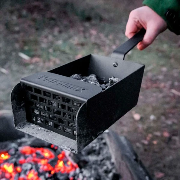 Die Petromax Kohlenschaufel ist ein idealer Helfer beim Befüllen und Reinigen von Grill- und Feuerstellen. Die schwarz lackierte Schaufel aus Stahl sorgt mit der großen Ablagefläche für Kohle und Briketts für ein schnelles Auffüllen des Grills. Kohle- und Aschereste bleiben dank hoher Seitenränder auf der Schaufel und lassen sich sauber transportieren. Nach dem Grillvergnügen sind meist nicht alle Kohlen oder Briketts restlos verbrannt. Die Kohlenschaufel mit einsetzbarem Sieb sorgt dafür, dass die Kohlenreste sauber von der Asche getrennt werden und beim nächsten Kocherlebnis im Freien wieder zum Einsatz kommen können. Auch die Reinigung des Grills oder der Feuerschale geht mit der großen Kohlenschaufel leicht von der Hand. Der (separat erhältliche) Petromax Holzgriff für schmiedeeiserne Pfannen passt übrigens auch an die Kohlenschaufel, umschließt passgenau den Stiel und schützt die Hand vor Hitze.Art.-Nr.: 1914394