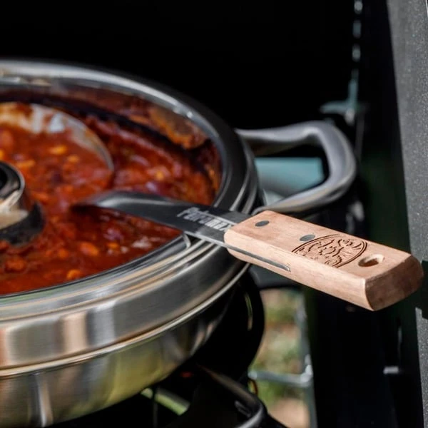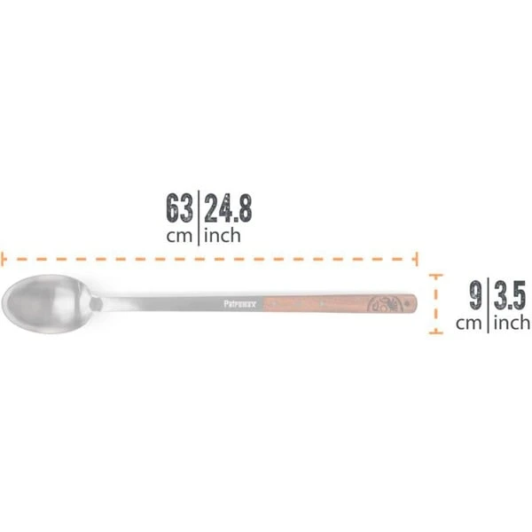 Der Petromax Servierlöffel ist ein praktischer Lagerfeuerlöffel für Aufläufe, Fleischgerichte, Beilagen und Gemüse. Mit 100ml Fassungsvermögen und 50cm Klingenlänge ist der hochwertige lange Löffel aus Edelstahl und Walnussholz mit eingraviertem Drachenlogo ideal zum Portionieren. Der extra lange Stiel sorgt für die passende Reichweite, wenn man über die Kochstelle hinweg direkt in die Schüsseln der Camp-Crew serviert. In gewohnter Petromax-Qualität sorgen die hochwertigen und robusten Materialien für eine perfekte Handhabung beim Anrichten und Portionieren der stärkenden Draußen-Mahlzeit. Feuerköche hängen ihren Petromax Servierlöffel mit Hilfe der Öse im Griff am Dreibein oder einem Haken in der Lagerfeuerküche auf. So kann direkt serviert werden, wenn der Auflauf fertig ist.Art.-Nr.: 1905409