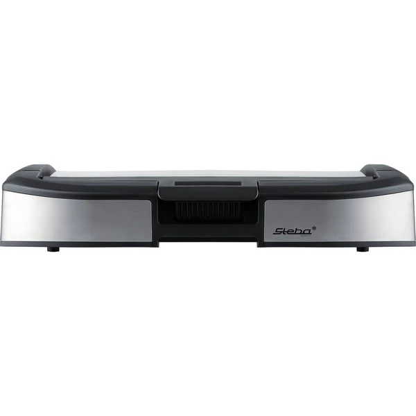 Der leistungsstarke, aber kompakte BBQ-Tischgrill VG 195 von Steba verfügt über eine Alu-Druckguss-Grillplatte und einen transparenten Glasdeckel zur Versiegelung des saftigen Geschmacks. Durch den Glasdeckel werden besonders zarte Grillergebnisse erzielt, ohne Austrocknen bei gleichzeitiger Bildung einer appetitlichen Kruste. Eigengeschmack, Inhaltsstoffe und Form bleiben so bestmöglich erhalten. Die Platte verfügt über einen gerippten Grillbereich, mit Grillmuster für Steaks oder Fisch, einen glatten Bereich für Würste, Bacon, Meeresfrüchte, Gemüse und ähnliches, und eine „Hot Zone“. Die Gussplatte heizt sich dank des integrierten Heizelements sehr schnell auf. Das integrierte Thermostat und die Temperatur-Kontrollleuchte sorgen dafür, dass alle Speisen perfekt zubereitet werden. Überschüssiges Fett wird in eine Auffangschale geleitet. Die antihaftbeschichtete Grillfläche verhindert das Festkleben von Grillgut. Der BBQ-Tischgrill VG 195 lässt sich dank abnehmbarer Grillplatte komfortabel reinigen und mit seinen kompakten Abmessungen leicht aufbewahren. Art.-Nr.: 1755887