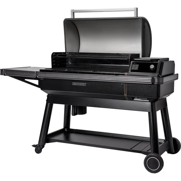 Der Ironwood XL von Traeger ist die führende Lösung für das Grillen und Kochen im Freien. Dieser mächtige Grill kann das gesamte Team problemlos versorgen, eine mit Holz angefeuerte Pizza backen, Hamburger, Bratkartoffeln, 16 Ständer mit Spareribs, 8 Schweinebraten oder 8 Hühnchen gleichzeitig mit einem zweistufigen, verstellbaren Grillrostsystem braten. Der WiFIRE-Controller, der den Grill über die Traeger-App mit dem Smartphone (Android und iOS) verbindet, bietet eine ganz neue Art von Freiheit. Man kann den Super Smoke Modus einschalten, die Garraumtemperaturen ändern oder die Kerntemperatur der Speisen direkt vom Smartphone aus überwachen. Man kann auch Rezepte mit der GrillGuide-Technologie von Traeger direkt auf den Grill herunterladen, damit der Grill den gesamten Kochprozess selbst steuern kann. Die Smart Combustion-Technologie sorgt für konstante Kochtemperaturen, während die vollisolierte Doppelwandkonstruktion Temperaturschwankungen reduziert. Der Traeger FreeFlow Feuertop und der Super Smoke Modus sorgen dafür, dass frischer Rauch über die Speisen strömt, um den optimalen Holzfeuergeschmack zu erzeugen. Grillen, Räuchern, Backen, Rösten, Schmoren, BBQ und mehr – alles auf einem Grill. Die P.A.L Pop-And-Lock-Zubehörschiene ermöglicht die zusätzliche Anordnung von Regalen, Werkzeughaken, Vorratsbehältern, Rollenhaltern und mehr, je nach persönlichem Kochstil. Der EZ-Clean Fett- und Aschebehälter sammelt Tropfen und Pellet-Asche in einem großen Behälter, der leicht zugänglich ist und sich schnell und bequem reinigen lässt. Der Ironwood XL ist außerdem mit einem Pellet-Füllstandssensor ausgestattet.
