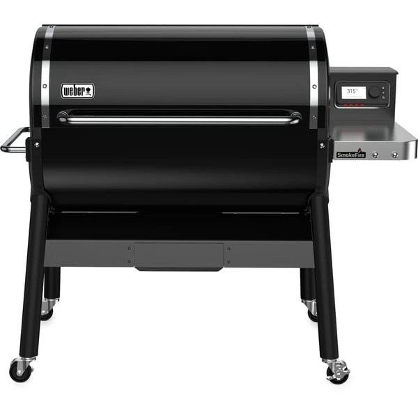 Der innovative Holzpellet-Grill SmokeFire EX6 GBS von Weber verbindet den authentischen Grillgeschmack von Holzkohle mit dem Komfort und der Benutzerfreundlichkeit von Gasgrills, ergänzt mit der Präzision und den High-Tech-Funktionen, die sonst nur ein Elektrogrill bietet. Mit dem SmokeFire kann man Steaks scharf anbraten, Briskets räuchern und Brot backen. Die Temperaturbandbreite von 95 – 315°C und die präzise Temperatursteuerung setzen neue Maßstäbe bei Geschmack, Zeit und Grillmöglichkeiten, und machen von Anbraten über Räuchern bis hin zu Backen alles möglich. Mit Weber Connect, dem digitalen Grillassistenten, war es noch nie so einfach das Grillgut genau auf den Punkt zu grillen. Das gut lesbare, witterungsbeständige LCD-Display zeigt die Schritt-für-Schritt-Grillanleitung von Weber Connect sowie Zeit-, Temperatur- und Steuerungsangaben an. Man kann bis zu vier Temperaturfühler anschließen, ein Kerntemperatur-Fühler ist bereits enthalten. Die bewährten Flavorizer Bars verteilen die Hitze gleichmäßig über den gesamten Grillrost, damit das komplette Grillgut von jeder Seite perfekt gegart wird. Und wenn man dem Grillgut noch etwas mehr von dem beliebten Holzfeueraroma verleihen möchte, braucht man nur den Smoke Boost einschalten, für noch authentischeren Grillgeschmack. Die einzigartige, geneigte Förderschnecke mit variabler Geschwindigkeit gewährleistet eine sichere Holzpelletzufuhr und vermeidet Pelletstaus. Der Trichterbehälter mit seinem großen Fassungsvermögen bietet Platz für einen ganzen 9-Kilo-Sack Holzpellets, damit kann man den ganzen Tag räuchern. Dank des durchdachten Reinigungssystems werden Asche und Fett für eine schnelle und einfache Reinigung anschließend getrennt voneinander in eine geschlossene, leicht herausnehmbare Auffangschale geleitet. Die porzellanemaillierte Oberfläche des SmokeFire EX6 GBS ist witterungsbeständig und sorgt für einen langfristigen Schutz vor Rost und Rissen.Art.-Nr.: 1602234